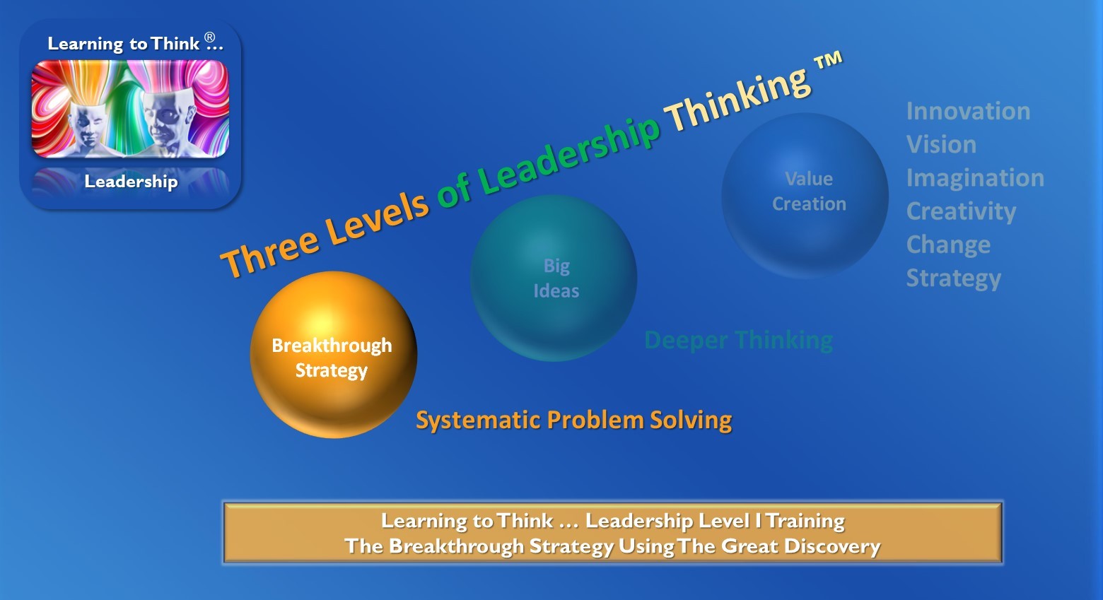 The book Learning to Think… Leadership: Understanding Dr. Mikel J. Harry’s Six Sigma Way of Thinking was written to identify, elaborate on, and link Mikel’s thought systems into a comprehensive model for Leadership thinking. The book necessarily was written at a technical level that may be difficult for lay people and those unfamiliar with Mikel’s work to understand. Learning to Think… Leadership Training is a level that is more easily understood and is written in recipe form so that Anybody can learn to think like a Leader.